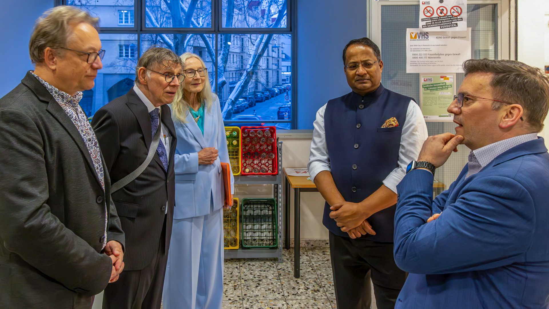 Der indische Botschafter, Mr. Shambhu S. Kumaran im Gespräch mit Bezirksvorsteher W. Zankl (links), VHS Direktor Schuster und M. Weichinger