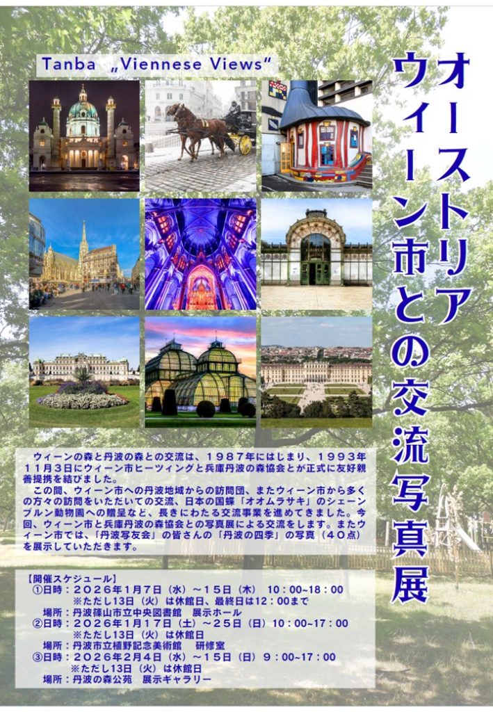 Kultureller Austausch zwischen der Region Hyogo-Tamba und Wien: Es wird auf die freundschaftliche Zusammenarbeit und den kulturellen Austausch zwischen der Region Hyogo-Tamba in Japan und Wien hingewiesen. Diese Partnerschaft wurde 1987 durch den damaligen Gouverneur von Hyogo initiiert.